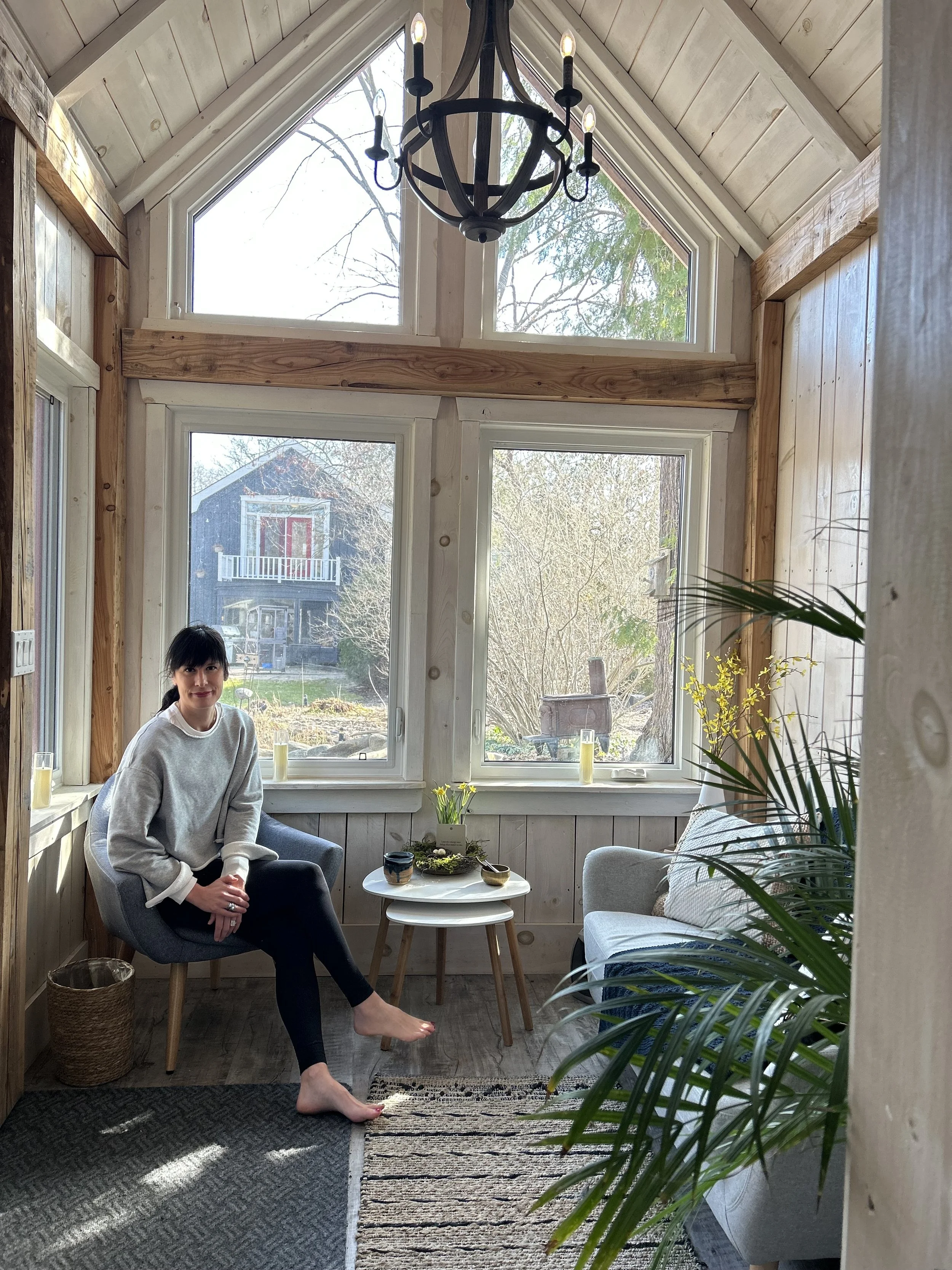 Classes moved outdoors, into the garden behind her home. Through uncertainty and shifting restrictions, people gathered under open skies to practice together. It worked but it wasn’t a long-term solution, especially through Ontario winters.